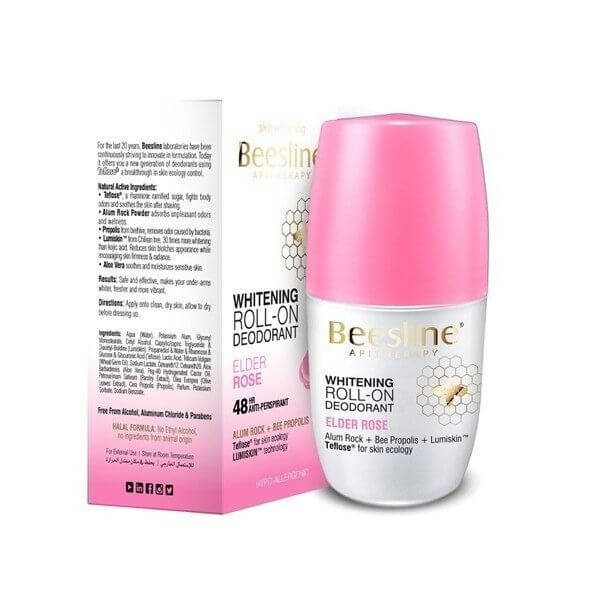Beesline Whitening Roll-On Elder-Rose an innovative skin-friendly formula that absorbs moisture, prevents odor also moisturizes underarms. Yet it is suitable for sensitive skin.