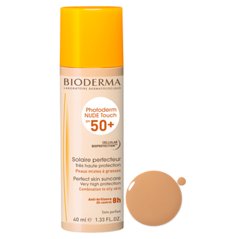 Bioderma NUDE-Touch SPF50+ Golden-Tint guaranty a uniform scattering all over the surface of the skin. Additionally, a long-lasting miniaturization that prevents protection removal even lack of color uniformity. As well, it evens the complexion: bare skin effect & long wear 8H. Even, boost complexion radiance and limits imperfections day after day. However it is very water resistant. Moreover, in order to contribute to the camouflage of skin imperfections, this sunscreen contains matifying and soft-focus powders that eliminate excess shine and regulate pores’ appearance. Additionally, this sunscreen also reduce the appearance of these imperfections as it contains salicylic acid, the Fluidactiv ™ patent and capriloil glycine, also regulating both the amountand the quality of the sebum that is produced.