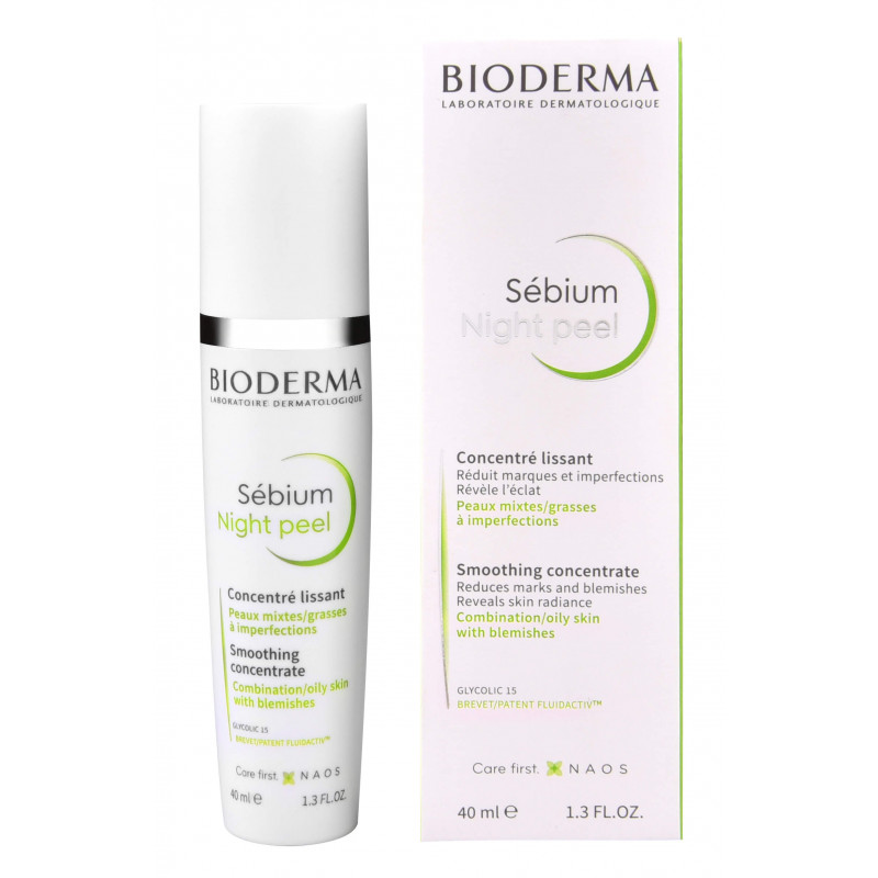 Bioderma Sebium Night Peel helps reduce marks and installed imperfections and reduces shine. Additionally, it soothes and refines the skin texture through a gentle peeling effect. As well, Glycolic acid, formulated at 15%, promotes epidermal renewal. Moreover, this gentle peeling treatment soothes the skin’s texture and reveals its natural radiance. It also combines D-Panthenol for its soothing action. In addition, the Fluidactiv patent biologically normalizes the quality of the sebum and avoids clogged pores. So as a result, your skin feels like new, smoother and clearer.