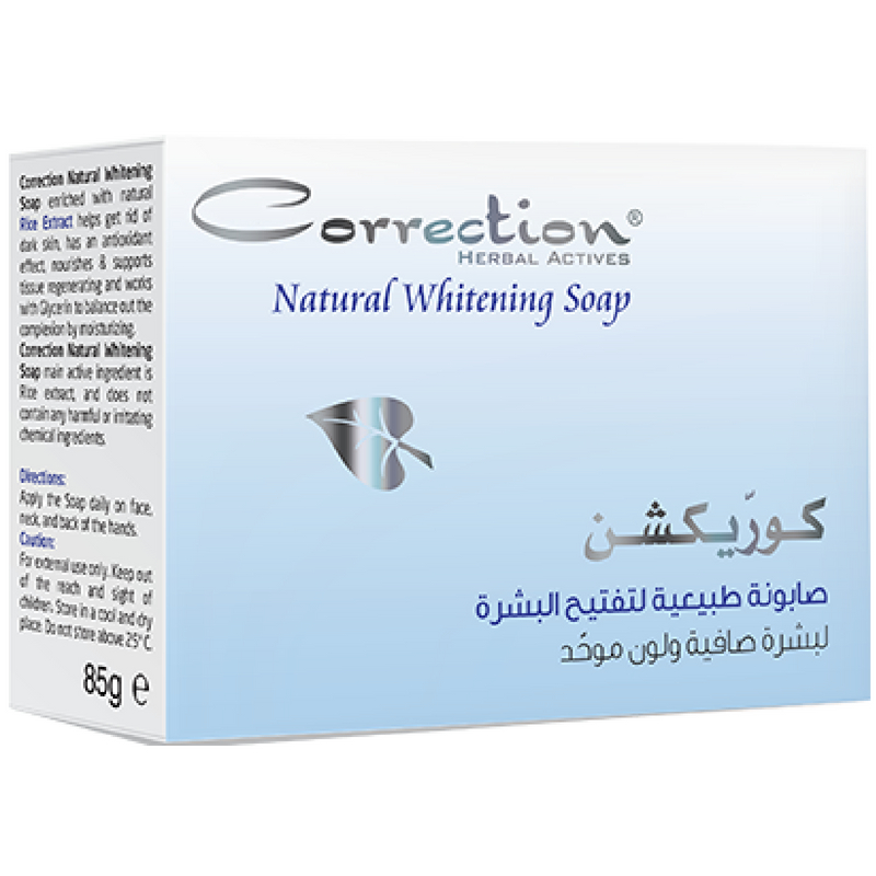 Correction Herbal Actives-Natural Whitening-Soap provides unprecedented efficiency to lighten pigment spots and skin discoloration. As well, it nourishes and supports tissue regenerating. Moreover, rich with Rice Extract that helps get rid of dark skin. Besides, it balances out the complexion by moisturizing, also it does not contain any harmful or irritating chemical ingredients.