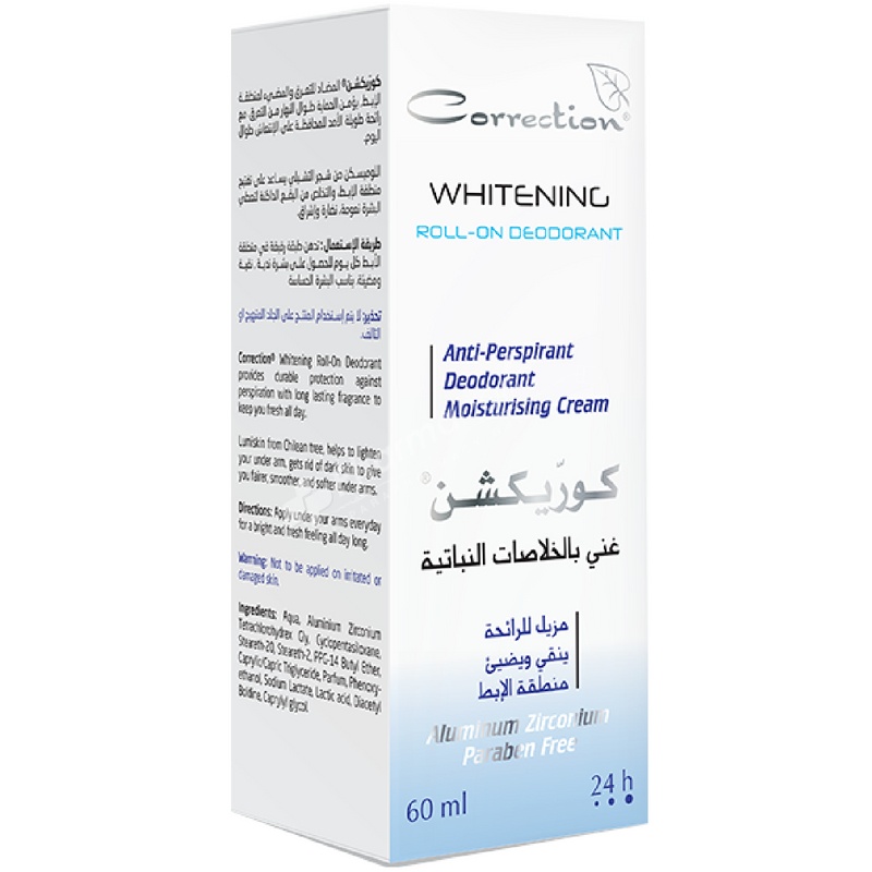 Correction Herbal-Whitening Roll-On Deodorant-Blue helps in eliminating skin depigmentation also prevent their reappearance in the under arm area. It also provides 24 hours durable protection against perspiration. As well, this product gives you fairer, smoothed and softer under arms.