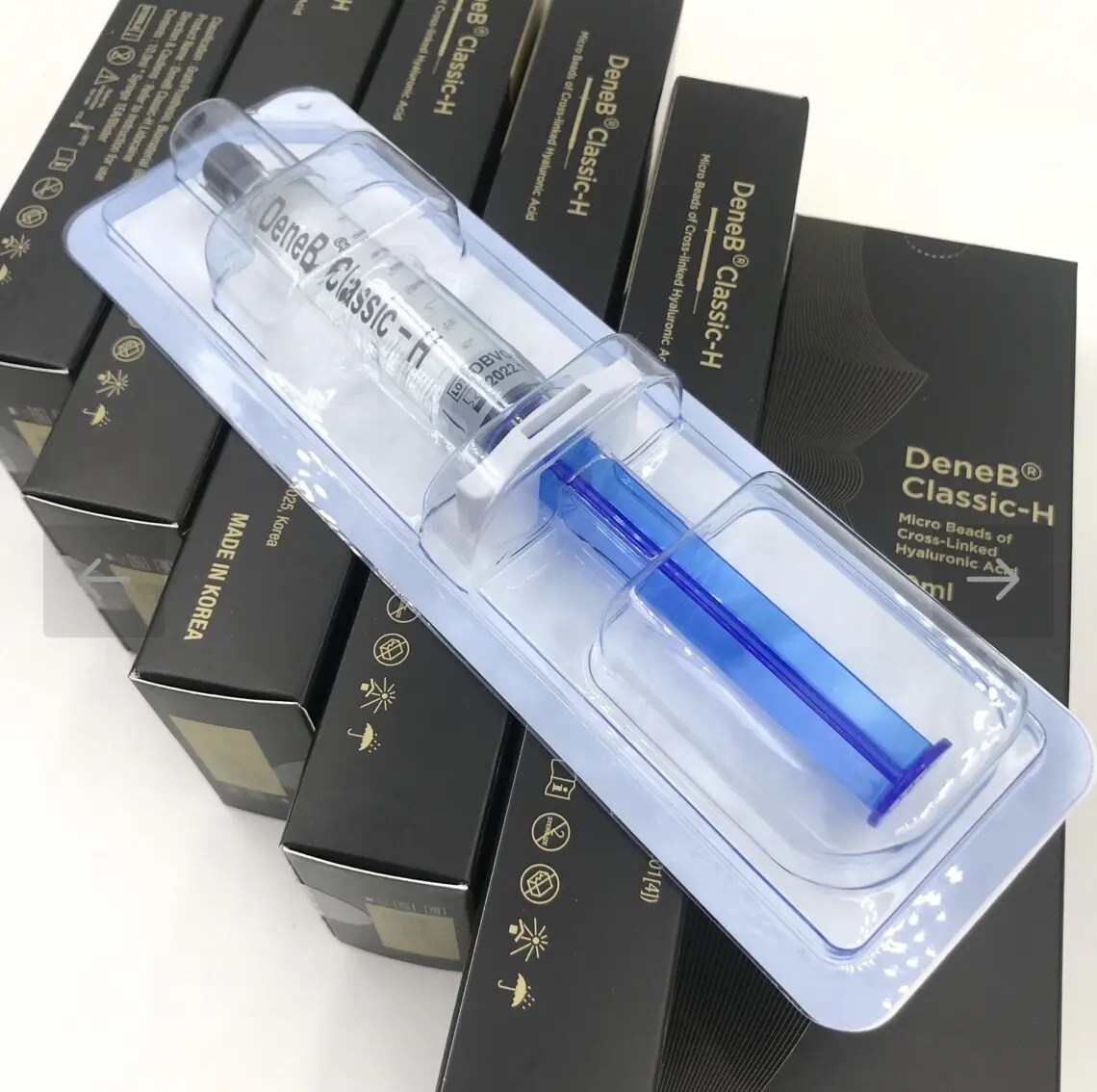 DeneB Classic H is a CE-approved hyaluronic acid dermal filler for body contouring, used to volumize breasts, buttocks, and other areas of the body. Hyaluronic acid is a naturally component of human skin and not derived from animals, poses no risk of allergic responses or disease transmission.