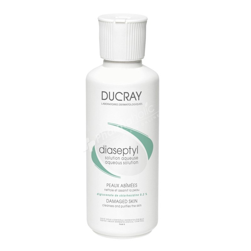 Ducray Diaseptyl Aqueous Solution is an antiseptic solution especially for superficial skin lesions, such as scrapes or insect bites. Furthermore, it contains chlorhexidine, a disinfectant and antiseptic that is effective against a broad range of microorganisms. Moreover, this solution cleans the skin easily and instantly, without causing pain or further damage to the skin. Also, the dermatologically tested formula is suitable for babies, children, and adults. Additionally, it is gentle and has antimicrobial effect.