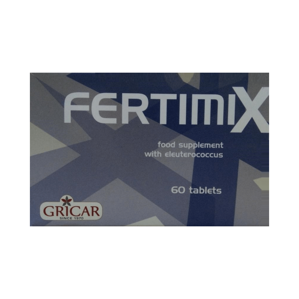 Fertimix is a food supplement containing Siberian ginseng with Vitamin A, C, E & minerals. It is suggested as dietary supplement in cases of poor nutrition or increased nutritional needs of those ingredients. Gives tone and energy both to the male and female organism.