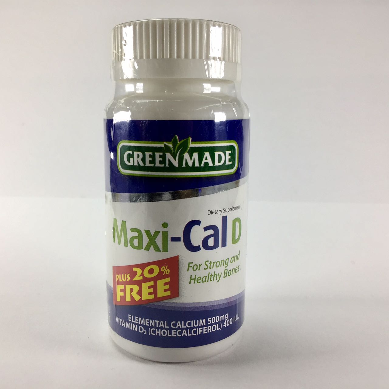Green made Maxi Cal D, is a nutrional supplement specially formulated to contain elemental calcium 500mg and vitamin D3 (cholecalciferol) 400IU.